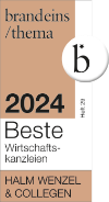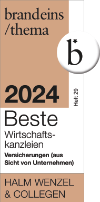 Auch 2024 von brand eins / thema "Die besten Wirtschaftskanzleien 2024" Auszeichnung für Halm Wenzel & Collegen mbB in den Bereichen "Versicherungen" und "Gesundheitswesen"